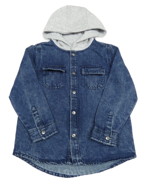 Tmavomodrá rifľová košeľová bunda s teplákovou kapucňou