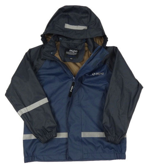 Tmavomodrá nepromokavá bunda s logom a odopínacíá kapucňou ZIG ZAG