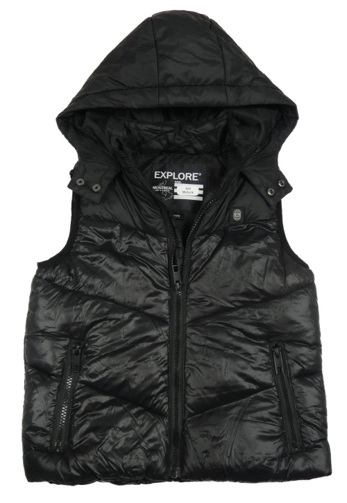 Čierna šušťáková zateplená vesta s nášivkou a kapucňou Matalan