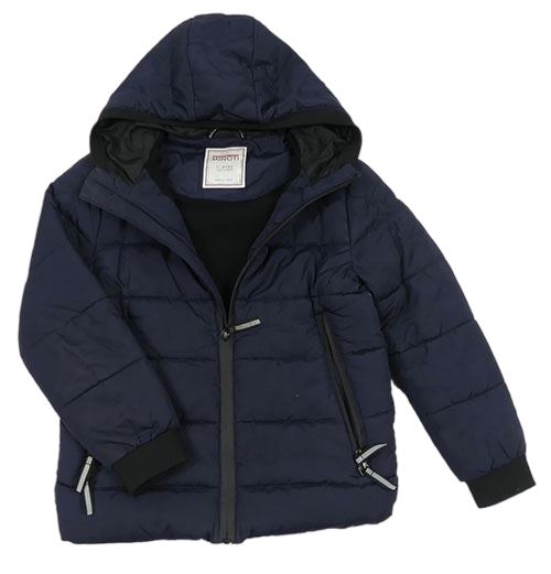 Tmavomodrá prešívaná šušťáková zimná bunda s kapucňou MINOTI