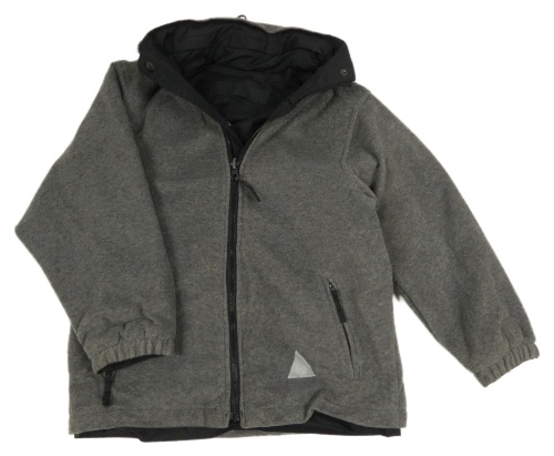Tmavosivá fleecová obojstranná bunda s ukrývací kapucňou
