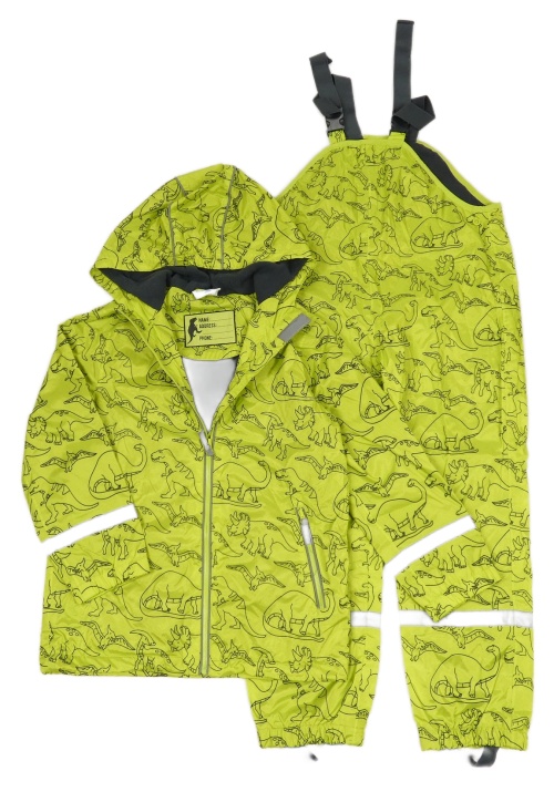 2Set - Limetková šušťáková jesenná bunda s dinosaurami a kapucí + na traké podšité nohavice Topolino