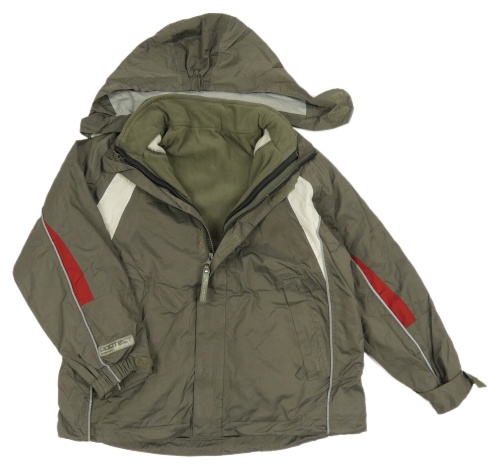 3v1 - Kaki-bielo-červená šušťáková jesenná bunda s ukrývací kapucňou TCM