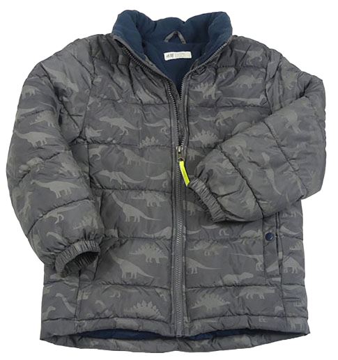 Tmavosivá prešívaná šušťáková zimná bunda s dinosaurami H&M