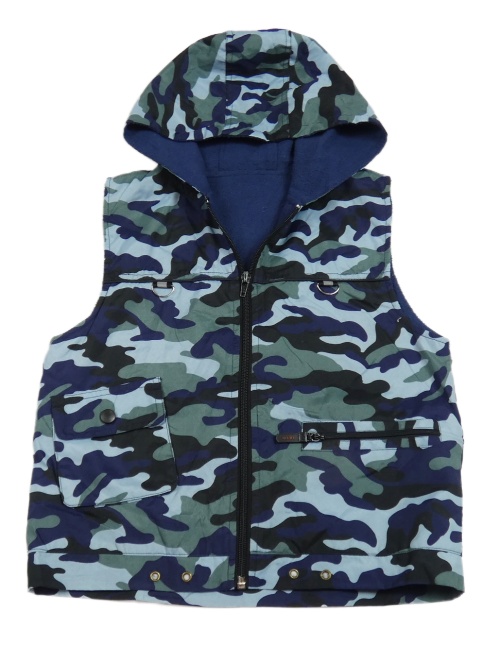 Tmavomodro-světlemodro-khaki army šušťáková podšitá vesta s kapucňou Heda