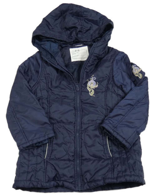 Tmavomodrá šušťáková zimná bunda s výšivkou a kapucňou