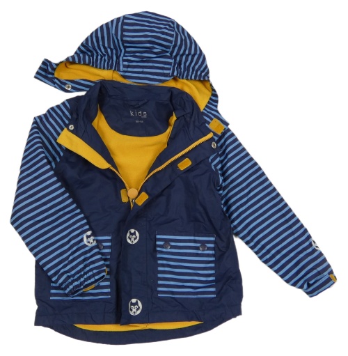 Tmavomodro-pruhovaná šušťáková zimná bunda s odopínacíá kapucňou Tchibo