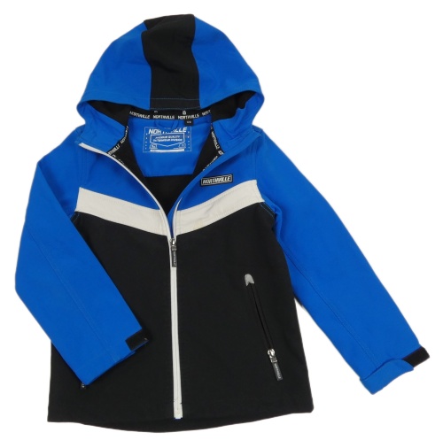 Cobaltovoě modro-bielo-čierna softshellová bunda s nášivkou a kapucňou C&A