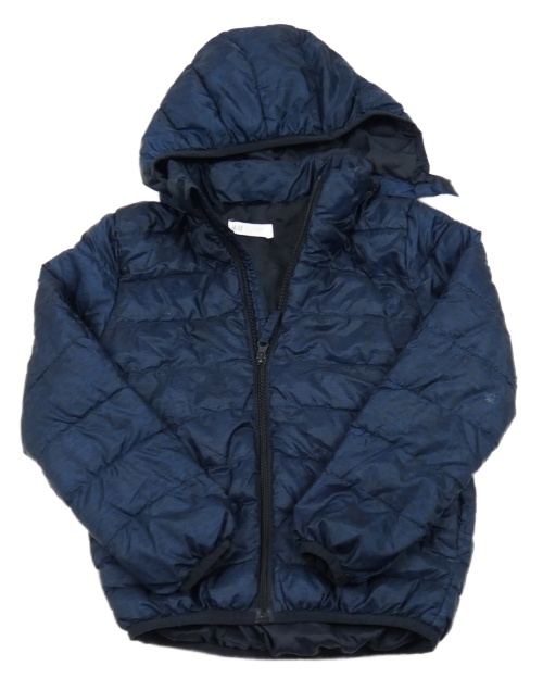 Tmavomodrá melírovaná šušťáková prešívaná zateplená bunda s kapucňou H&M