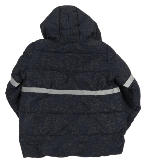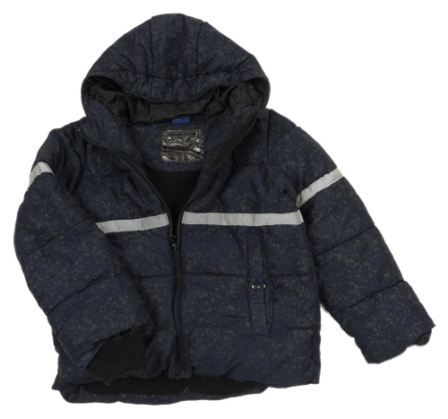 Tmavomodrá šušťáková zimná bunda s flíčky, proužkem a kapucňou Lupilu