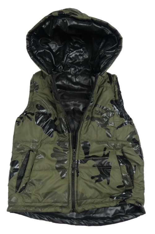 Khaki army šušťáková zateplená vesta s kapucňou