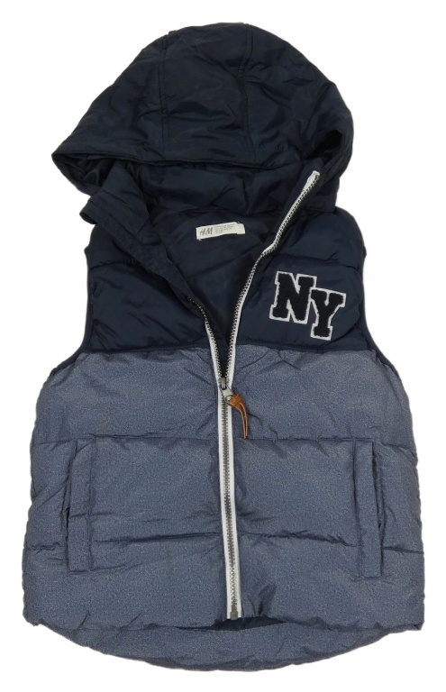 Tmavomodro-melírovaná šušťáková zateplená vesta s písmeny a kapucňou H&M