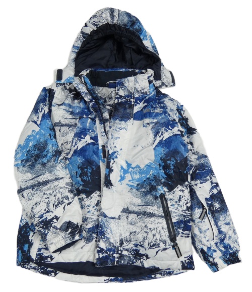 Bielo-modrá šušťáková zimná lyžiarska bunda s kapucňou Crivit