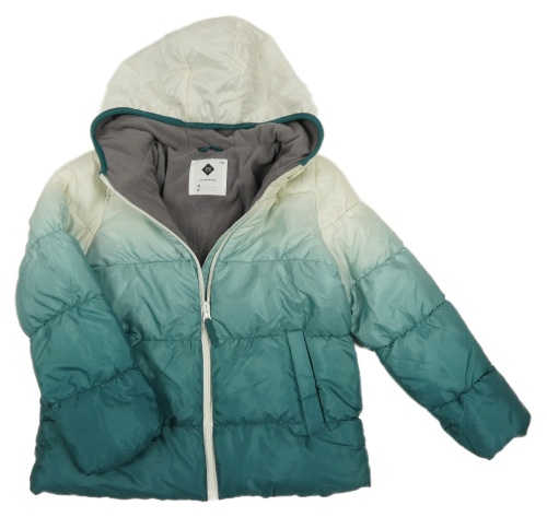 Bielo-zelená ombré šušťáková zimná bunda s kapucňou