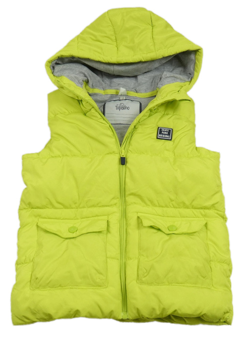 Neónově zelená šušťáková zateplená vesta s nášivkou a kapucňou Topolino