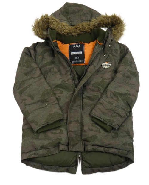 • Kaki-béžová army šušťáková zimná bunda s nášivkami a kapucňou s kožešinou Urban