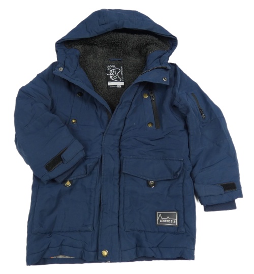 Tmavomodrý šušťákový zimný kabát s nášivkou a kapucňou F&F