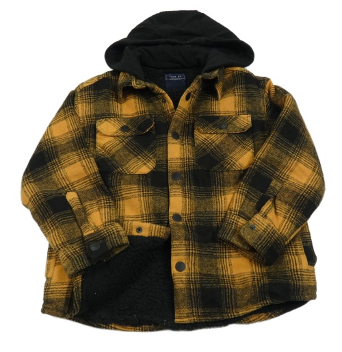 Čierno-žltá kockovaná zateplená košeľová bunda s kapucňou Next