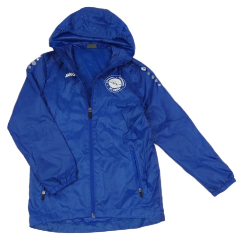 Modrá šušťáková športová bunda s potlačou a kapucňou JAKO