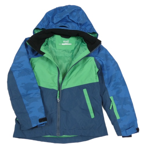 Modro-zelená šušťáková funkčná lyžiarska bunda s kapucňou kids