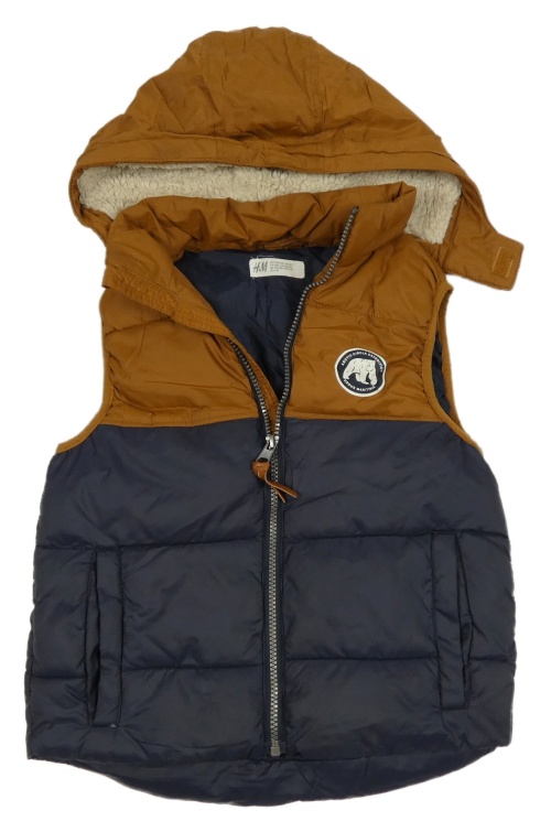 Tmavomodro-hnedá šušťáková zateplená vesta s nášivkou a kapucňou H&M