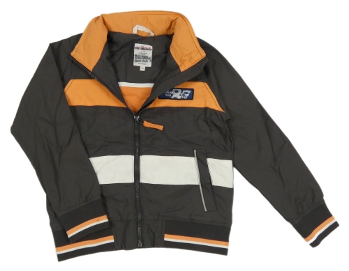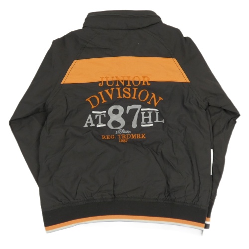 Sivo-bielo-oranžová šustáková jarná bunda s nášivkou S. Oliver