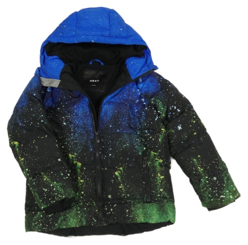 Čierno-zeleno-zafírová skvrnitá prešívaná šušťáková zimná bunda s kapucňou Next