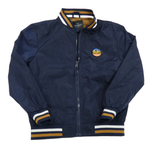 Tmavomodrý šusťákový jarní bomber s nášivkou