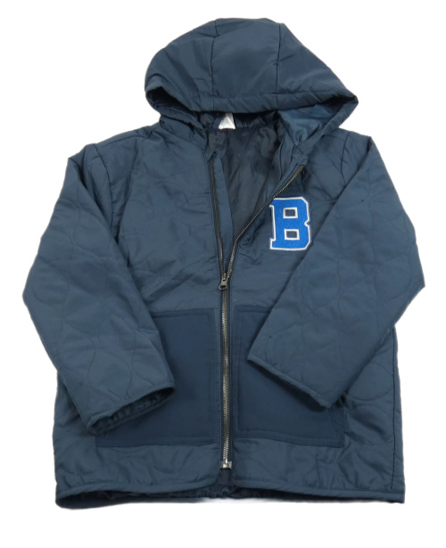 Tmavomodrá šušťáková prešívaná jarná bunda s písmenem a kapucňou