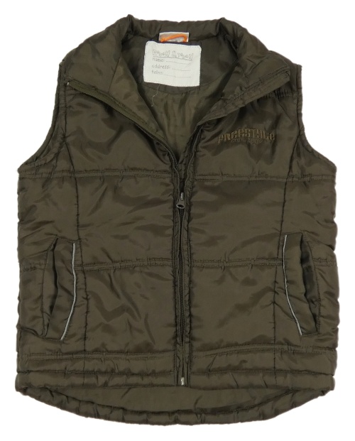 Tmavohnedá šušťáková zateplená vesta s nápisom X-mail