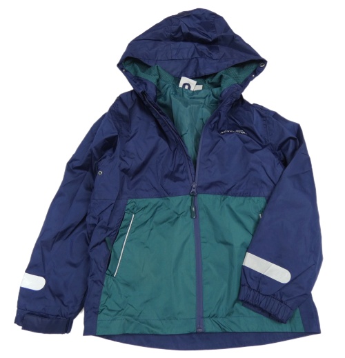 Tmavomodro-smaragdová šušťáková funkčná jarná bunda s nápismi a kapucňou crane