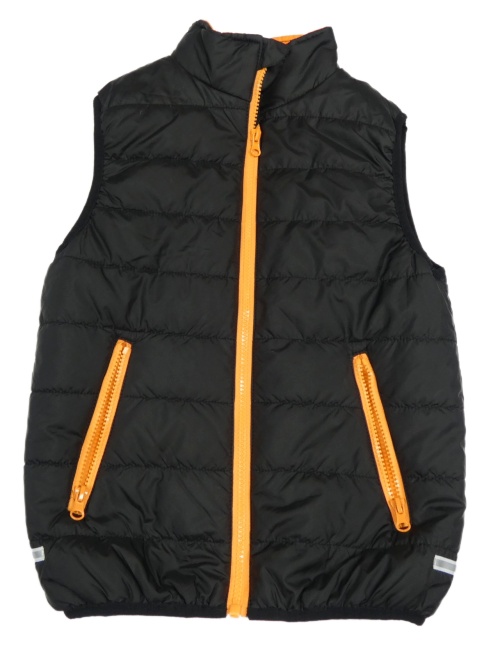 Čierno-oranžová šušťáková prešívaná zateplená vesta