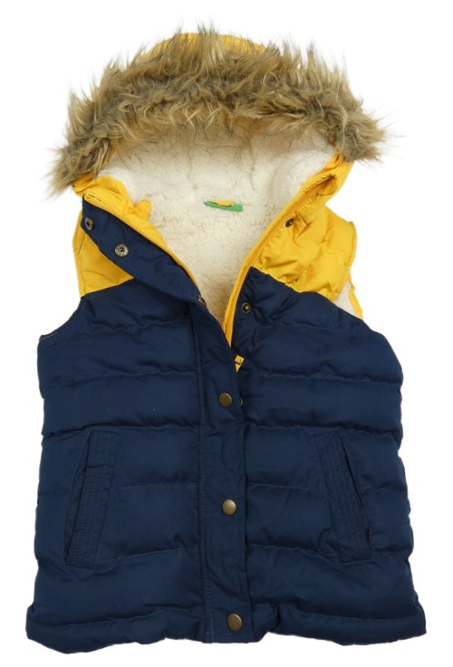 • Tmavomodro-žltá šušťáková zateplená funkčná vesta s kapucňou s kožešinou Mountain Warehouse