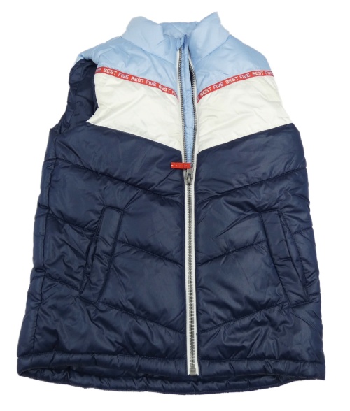 Modro-bielo-tmavomodrá šušťáková zateplená vesta kids
