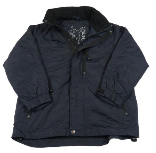Tmavomodrá šušťáková lehce zateplená bunda s kapucňou