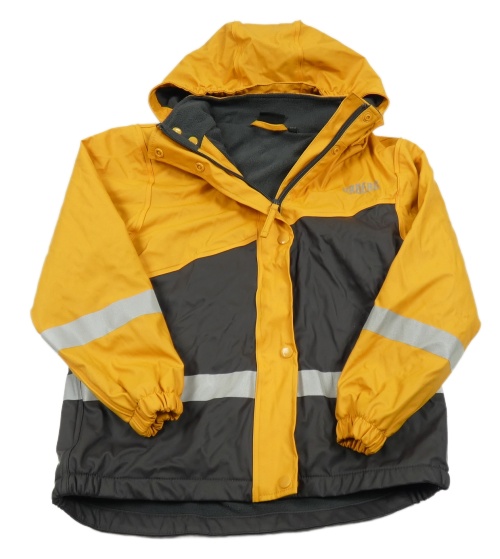 Pomerančovo-tmavosivá nepromokavá jarná bunda s kapucňou