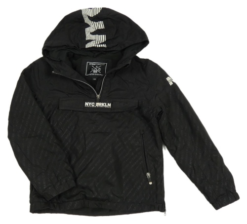 Čierna šušťáková zateplená bunda s nápismi a kapucňou C&A