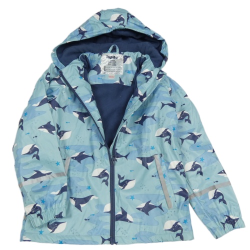 Svetlomodrá nepromokavá jarná bunda s velrybami a kapucňou Lupilu