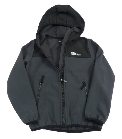 Tmavošedo-čierna softshellová bunda s logom a kapucňou Jack Wolfskin