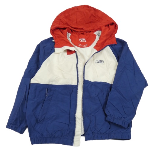 Modro-bielo-červená šušťáková jarná bunda s kapucňou Zara