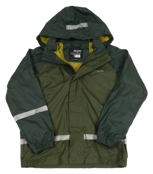 Kaki-tmavozelená nepromokavá bunda s odopínacíá kapucňou ZigZag