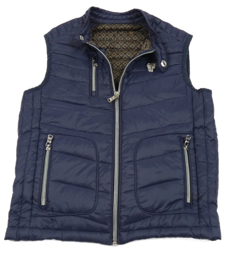 Tmavomodrá šušťáková zateplená vesta s nášivkou