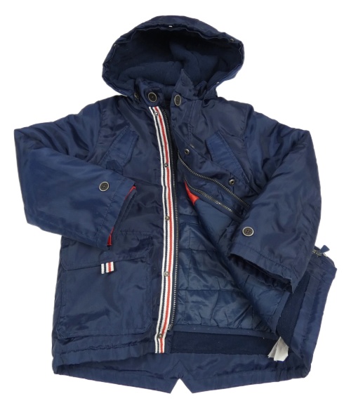 uvnitř tmavomodrá prošívaná šusťáková zateplená odepínací bunda