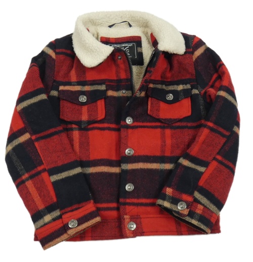 Červeno-tmavomodrá kockovaná vlnená košeľová zateplená bunda C&A