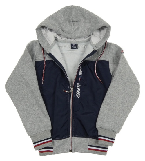 Šedo-tmavomodrá propínací bundomikina s logom a kapucí - Tommy Hilfiger