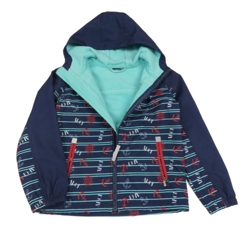 Tmavomodrá pruhovaná softshellová bunda s kotvami a kapucňou