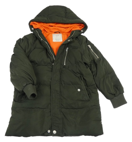 Khaki šušťáková zimná bunda s kapucňou Zara