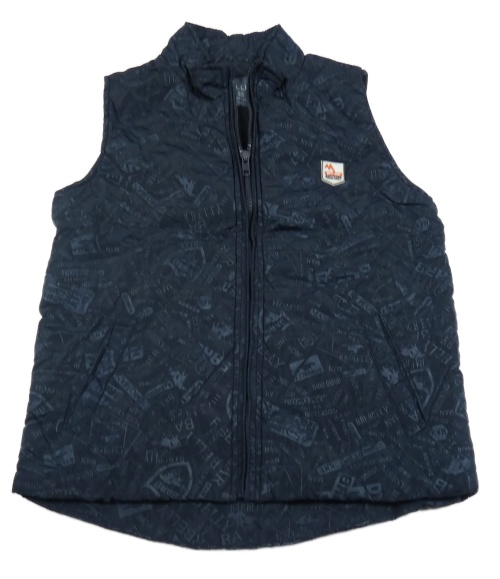 Tmavomodrá šušťáková lehce zateplená vesta s nápismi