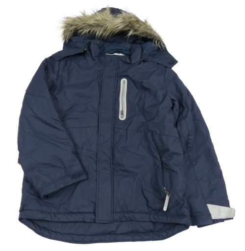 Tmavomodrá šušťáková zimná bunda s odopínacíá kapucňou s kožešinou H&M