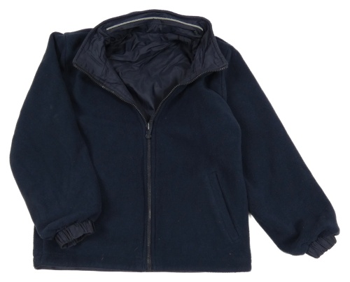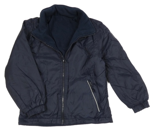 Tmavomodrá šušťáková obojstranná bunda s ukrývací kapucňou